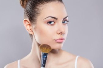 Blush adds a healthy flush to the face. Choose a shade of blush that suits your skin tone and gently sweep the brush over the top of your cheekbones. Highlights enhance the depth of the face. Lightly highlight your face above your cheekbones, along the bridge of your nose and under your chin.